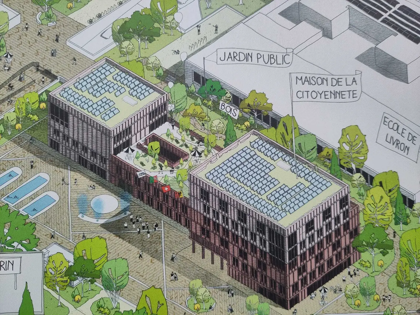 La nouvelle Mairie est se trouvera au-dessus du nouveau parking souterrain de Meyrin Centre.