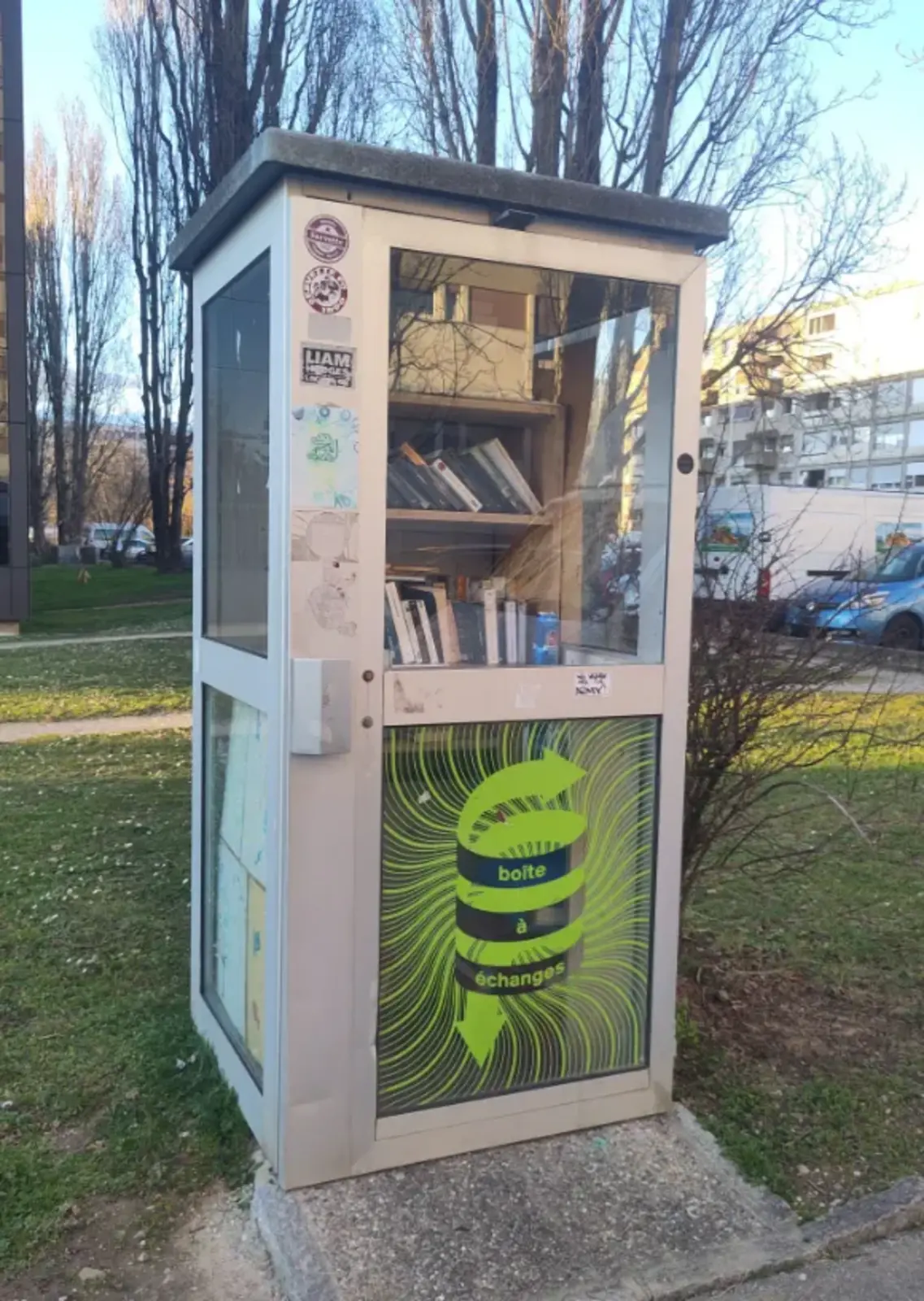 A Meyrin, 3 cabines Swisscom ont été réaménagées pour partager notamment des livres, des jeux, des jouets :